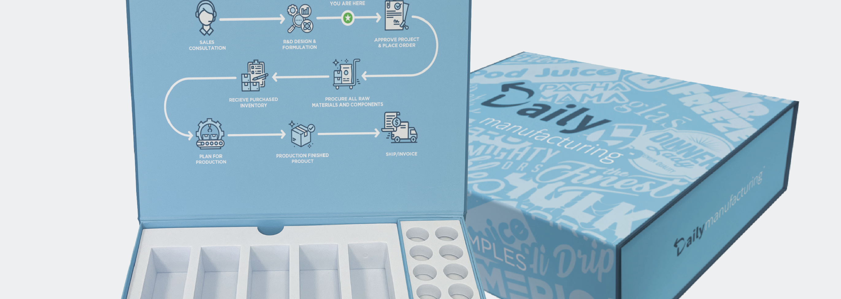 At Daily Manufacturing, I led branding and packaging projects for a wide range of clients, while also handling in-house marketing and internal communications. Over my three years there, I managed timelines for a small design team and acted as the main point of contact for our clients. The role helped me get comfortable juggling deadlines, shifting priorities, and guiding both the creative process and client relationships with confidence.