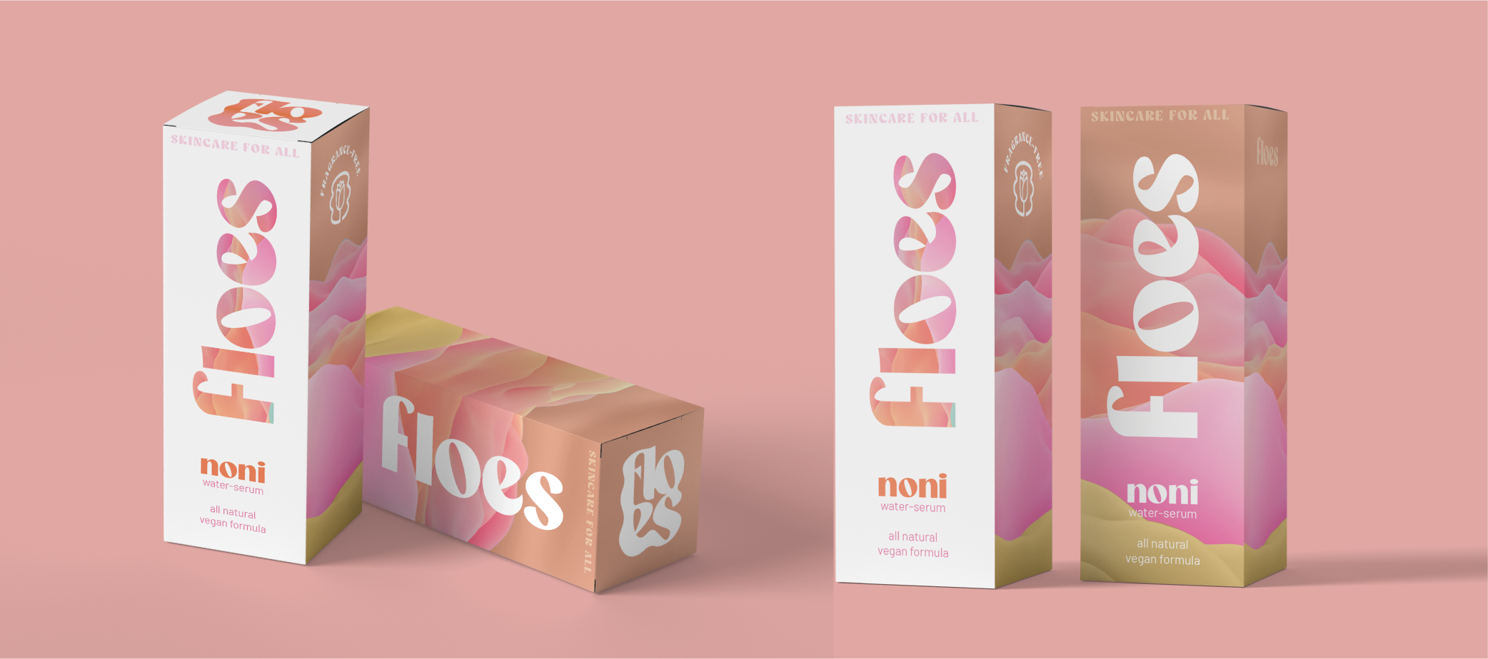 Floes Skincare is aimed at young women who want a simple, effective skincare routine. The design aesthetic uses youthful colors and clean, ingredient-centric layouts, creating a fresh and approachable look. I developed the brand identity and packaging to highlight the brand’s commitment to transparency and simplicity, making skincare feel accessible and empowering.