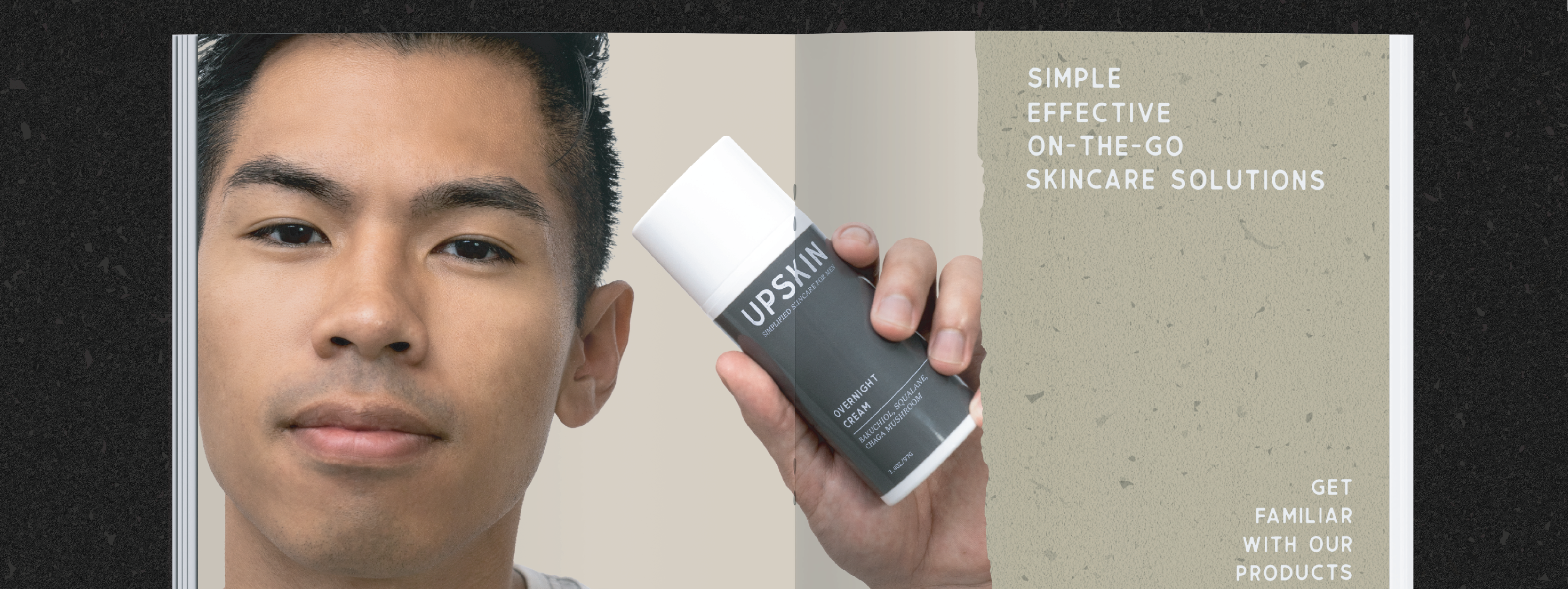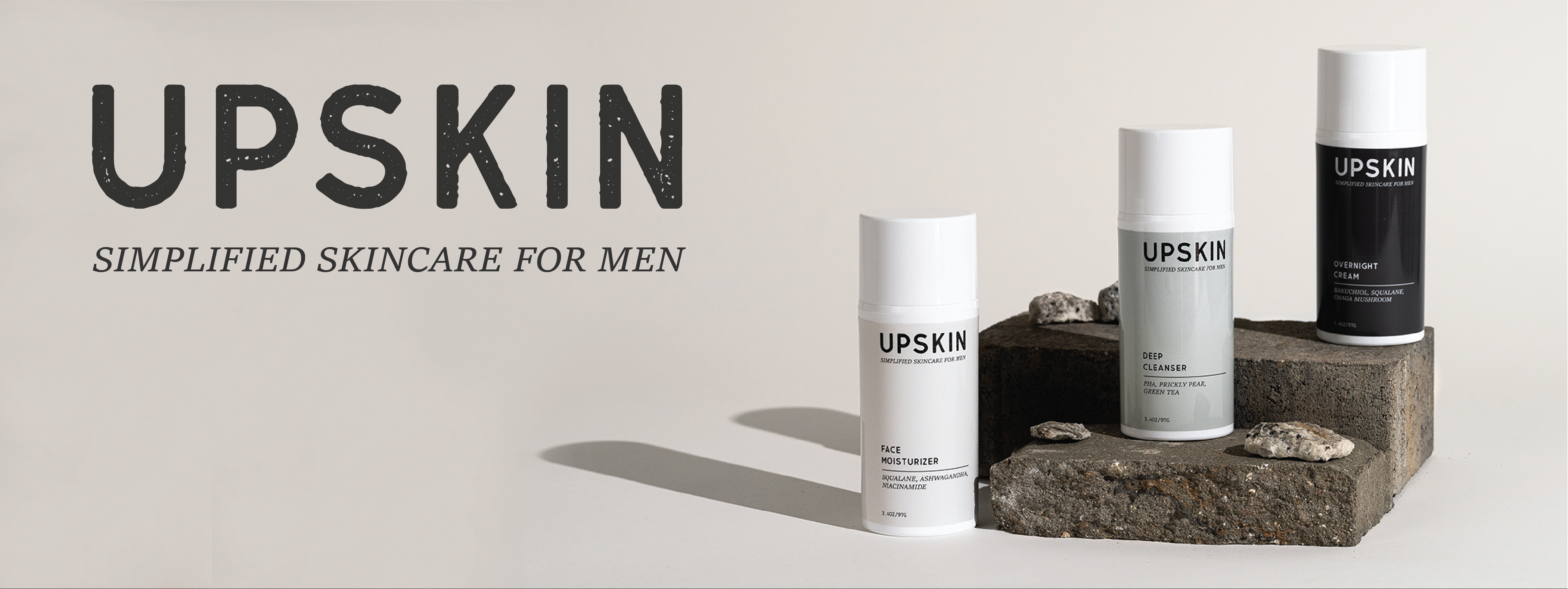Upskin is a minimalist skincare line designed for men seeking a straightforward routine. I created the logo, brand identity, packaging design, and Shopify website, all centered around a clean, minimalist aesthetic. From simplified ingredients to streamlined visuals, every design choice supports the brand’s mission: making skincare simple, effective, and approachable for men.